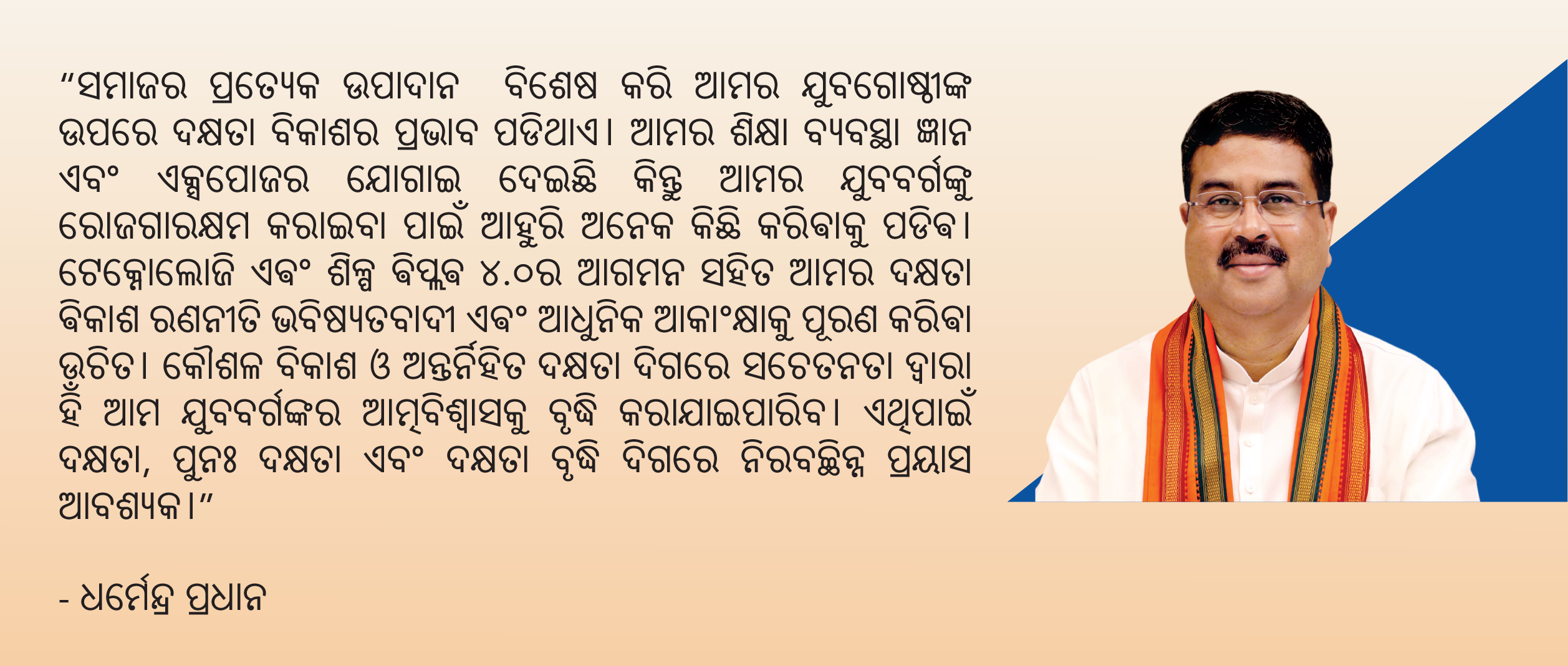 ଭବିଷ୍ୟତକୁ ଦୃଷ୍ଟିରେ ରଖି ଏକ ନୂତନ ଯୁବଗୋଷ୍ଠୀ ପ୍ରସ୍ତୁତ କରିବା ଆମର ଲକ୍ଷ୍ୟ। ବିଶ୍ଵ ଦକ୍ଷତା ସହ ଭାରତର ଦକ୍ଷତାକୁ ମେଳ ଖୁଆଇଵା ଆମର ଯୋଜନା। ଏହାକୁ ହାସଲ କରିବାପାଇଁ କୌଶଳ ରଥ ମାଧ୍ୟମରେ ଓଡିଶାର ୫ରୁ ଅଧିକ ଜିଲ୍ଲା ଓ ସହରରେ, ୩୦୦୦ ମେକାନିକ ଓ ଯୁବଗୋଷ୍ଠୀଙ୍କୁ ପ୍ରଶିକ୍ଷିତ କରାଯିବ। |